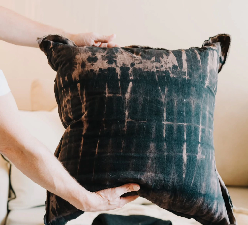 Almohadon en tussor teñido a mano, con mchisima presencia y onda, No hay dos iguales !