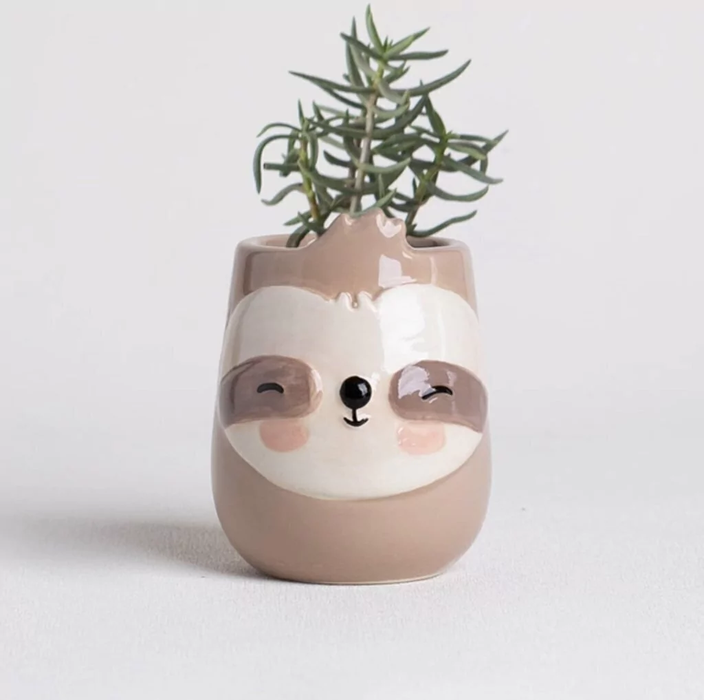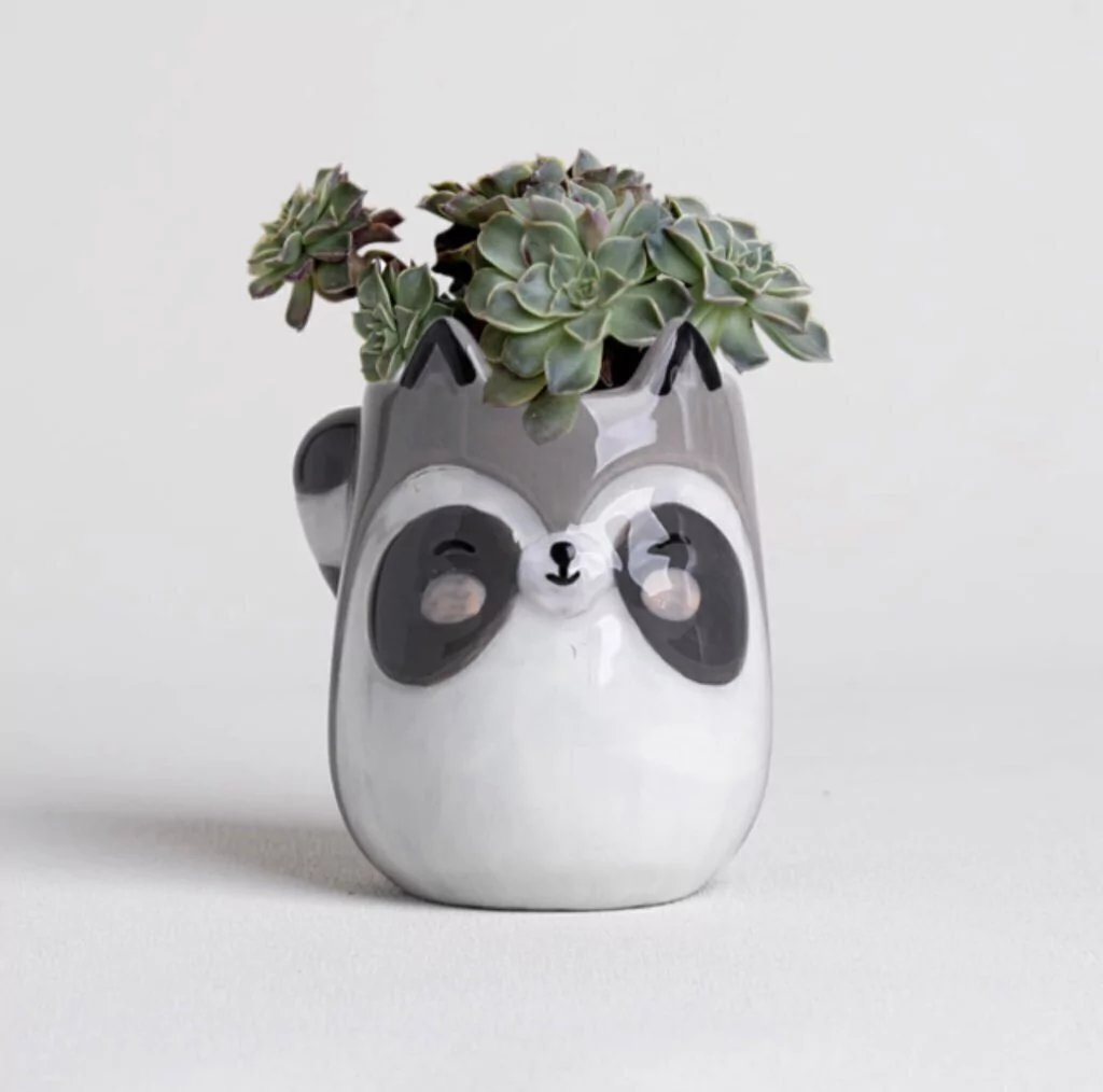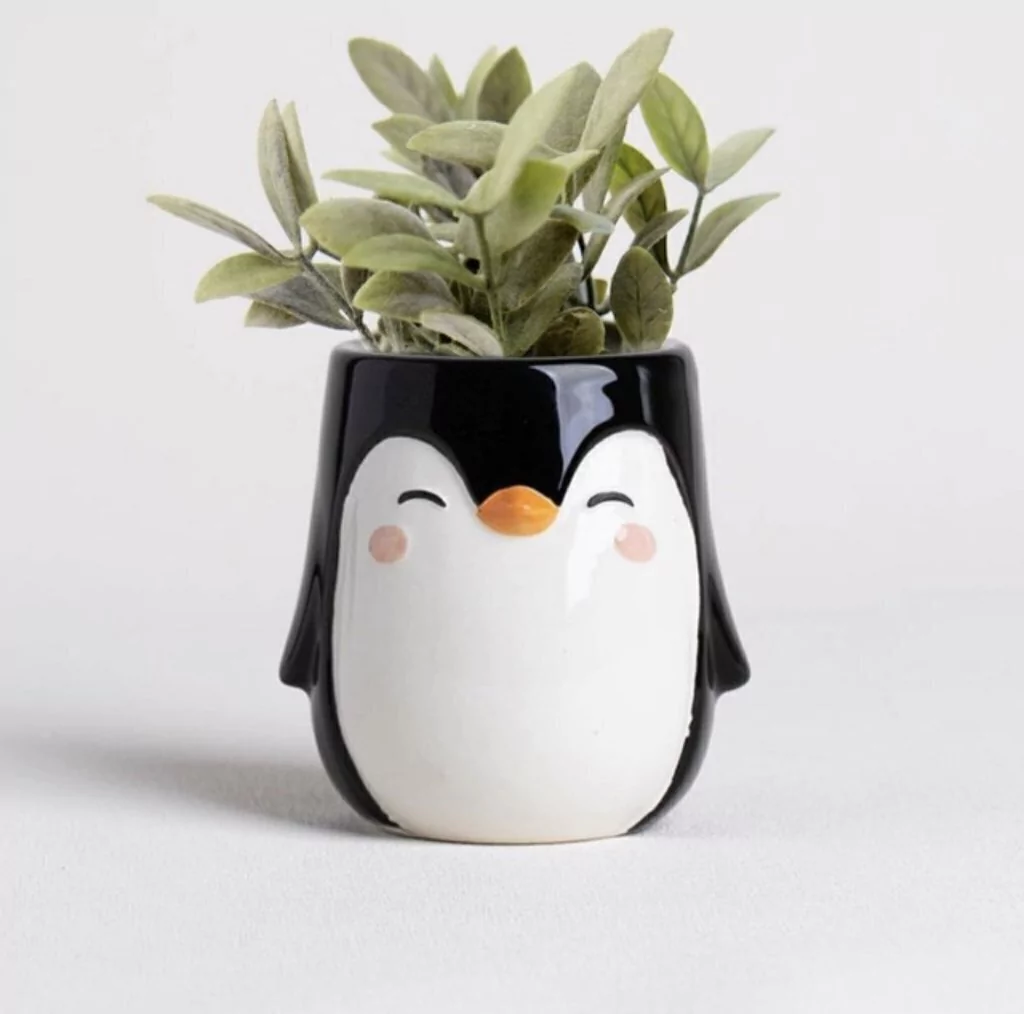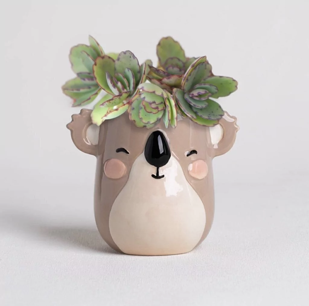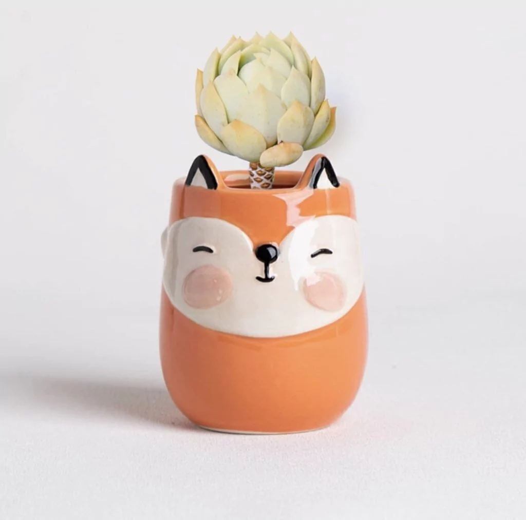 Animalitos de cerámica hechos a mano. Tamaño: 8 x 8 x 10 cm. Incluye caja de cartón impresa. No incluyen la planta. No tienen orificio en la base para que puedas usarlo como lapicero, alhajero, mate, taza…. y muchas cosas más!