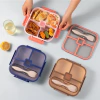 Cuenta con tres divisiones + cubierto + compartimento extra para salsas / dips.