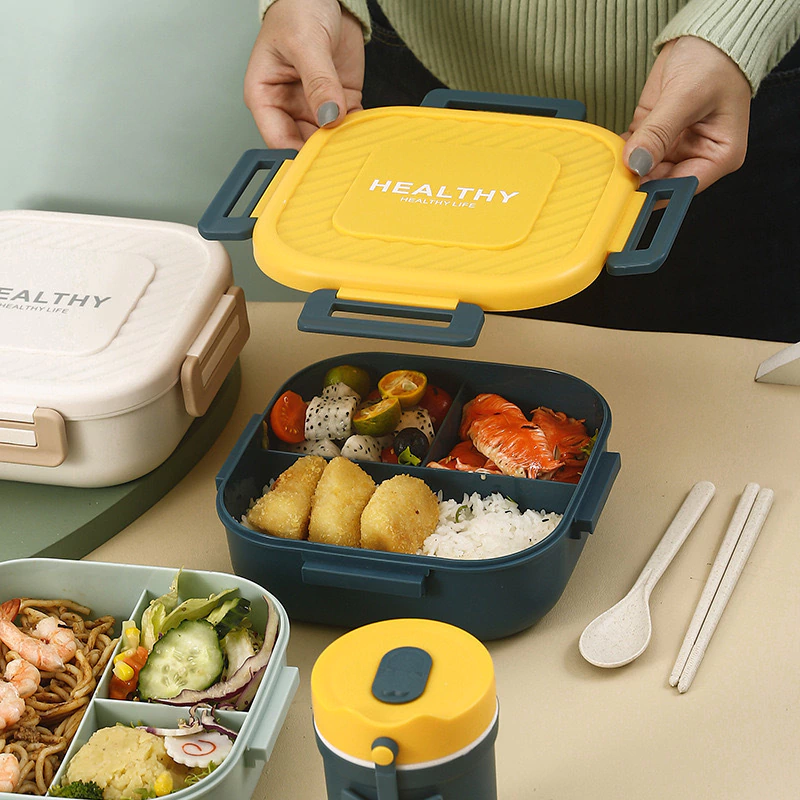 Lunchera con tres divisiones + cubiertos Cierres súper herméticos, ideal para transladar y llevar con vos donde sea !